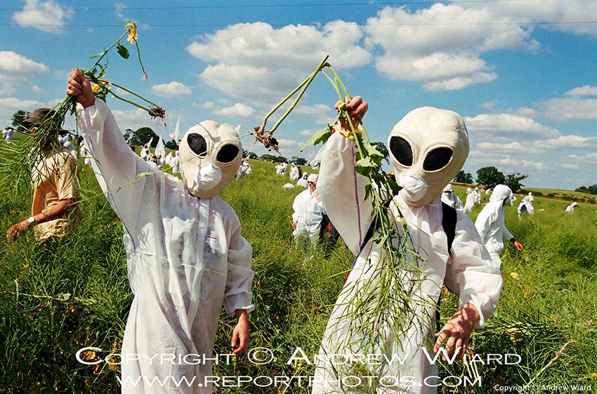 Freelance photo sample Andrew Wiard (Andrew Wiard) Alien Crops Demonstrators invade and damage a test site of a genetically modified crop of oilseed rape, Watlington , Oxfordshire, 18.7.99. Return to details for Andrew Wiard